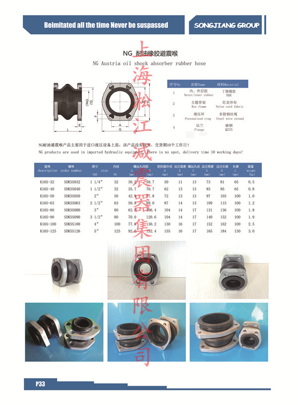 NG橡膠避震喉是*種市場上非常少見的橡膠接頭種類,采用奧地利標準,是用在液壓設(shè)備上的,采用耐油型橡膠生產(chǎn),質(zhì)量穩(wěn)定可靠,該產(chǎn)品沒有現(xiàn)貨,*般需要定做,訂貨周期為10個工作日!